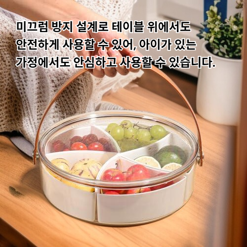 ● 세련된 디자인의 거실 커피 테이블 과일 접시는 어느 공간에도 잘 어울리며, 집안의 분위기를 한층 고급스럽게 연출해줍니다. ● 내구성이 뛰어난 고품질 소재를 사용하여 오랜 시간 변형 없이 사용 가능하며, 실용성과 미적 감각을 모두 갖추었습니다. ● 넉넉한 사이즈로 다양한 과일이나 다과를 한 번에 담을 수 있어 가족 모임이나 손님 접대 시에도 매우 유용합니다. ● 손쉬운 세척과 관리로 위생적으로 사용할 수 있으며, 일상생활에서 편리하게 활용할 수 있습니다. ● 미끄럼 방지 설계로 테이블 위에서도 안전하게 사용할 수 있어, 아이가 있는 가정에서도 안심하고 사용할 수 있습니다.